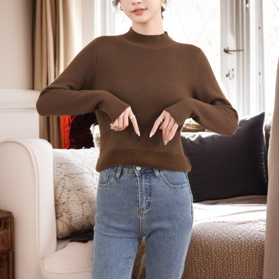 ● 포근한 기모 소재로 제작되어 한겨울에도 따뜻하게 착용할 수 있는 반폴라 니트입니다.